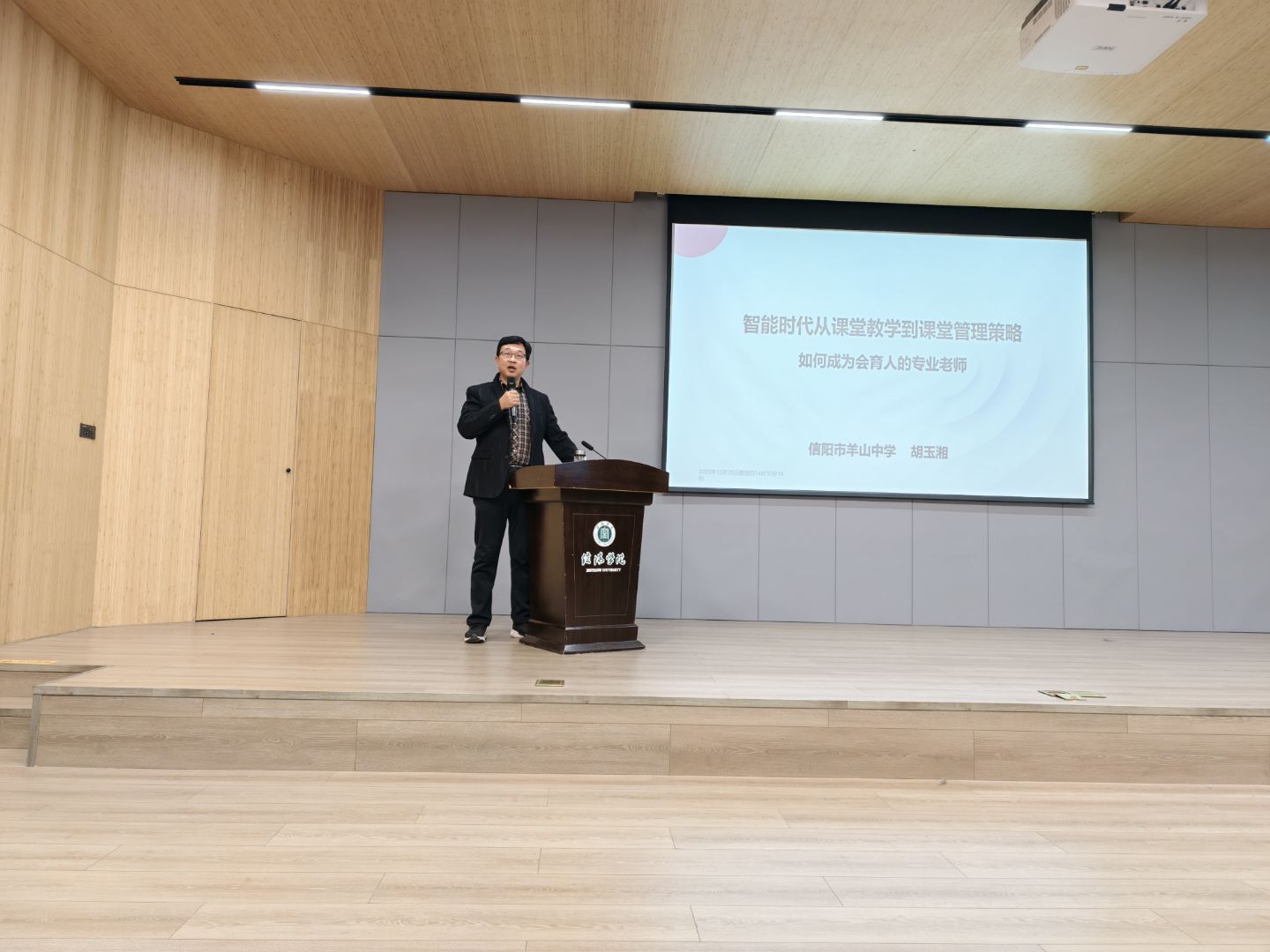 为助力生物学科专业发展,提升学科育人教学水平,12月26日下午,理工学院特邀信阳市羊山中学正高级教师胡玉湘,开展了一场以“如何成为生物学科育人的专业教师”为主题的专题学术讲座。生物科学专业2022级、2023级学生及生物科学教研室教师齐聚一堂,共赴这场学科育人经验的盛宴。讲座由生物科学教研室主任高进勇主持。