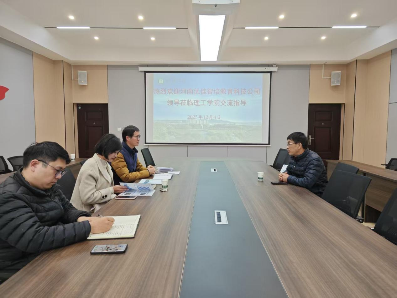 为深化产教融合、拓展校企合作新路径,12月4日上午,河南优佳智培教育科技有限公司侯经理一行莅临理工学院考察交流,学院党总支书记赵佳、学工秘书杨晓杰、理工学院实验中心主任杨潇剑、就业专干赵鸾参会。