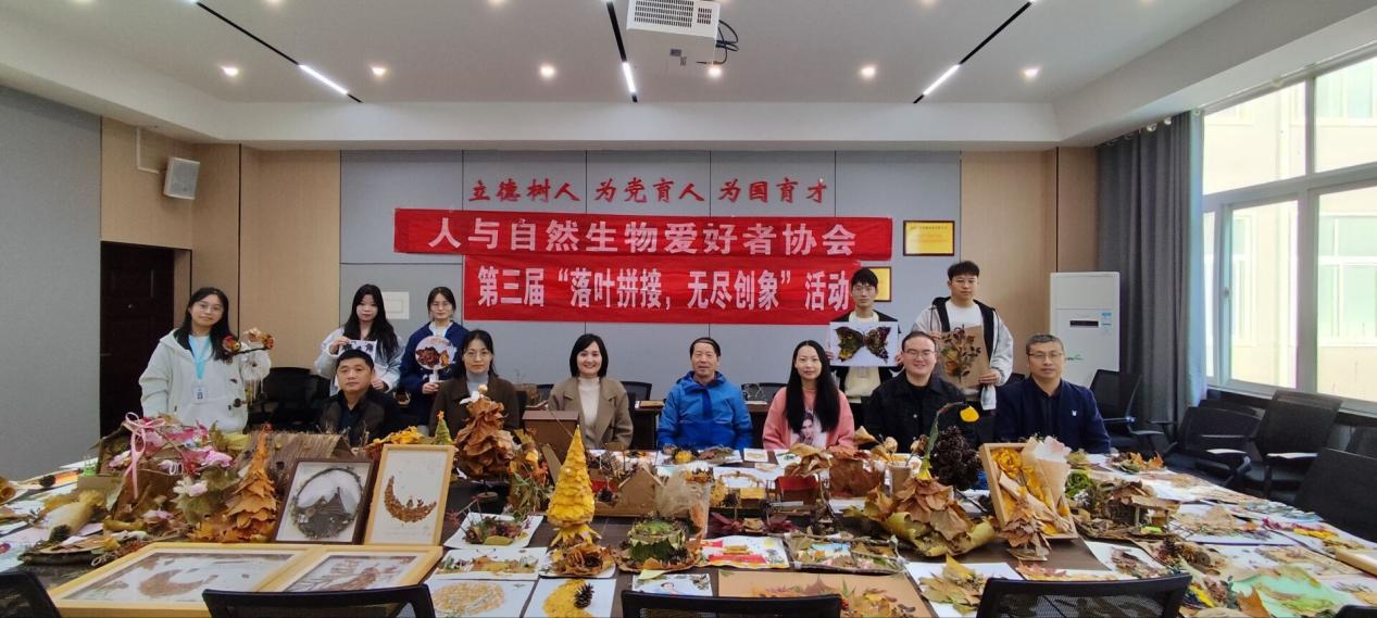 当秋意渐浓,校园里的落叶褪去翠绿、染上金黄与绯红,它们不再是萧瑟的象征,而是化身成了承载创意的“自然素材”。循着这份秋日浪漫与巧思,理工学院人与自然生物爱好者协会于2025年11月10日至11月16日在理工楼412教室以及理工楼一楼大厅,开展了以“落叶织梦,自然之语”为主题的落叶拼接活动评比及展示活动。理工学院院长肖生发、党总支书记赵佳、社团指导老师徐东亚及生物科学专业相关老师担任本次活动评委,并对作品进行筛选与点评。