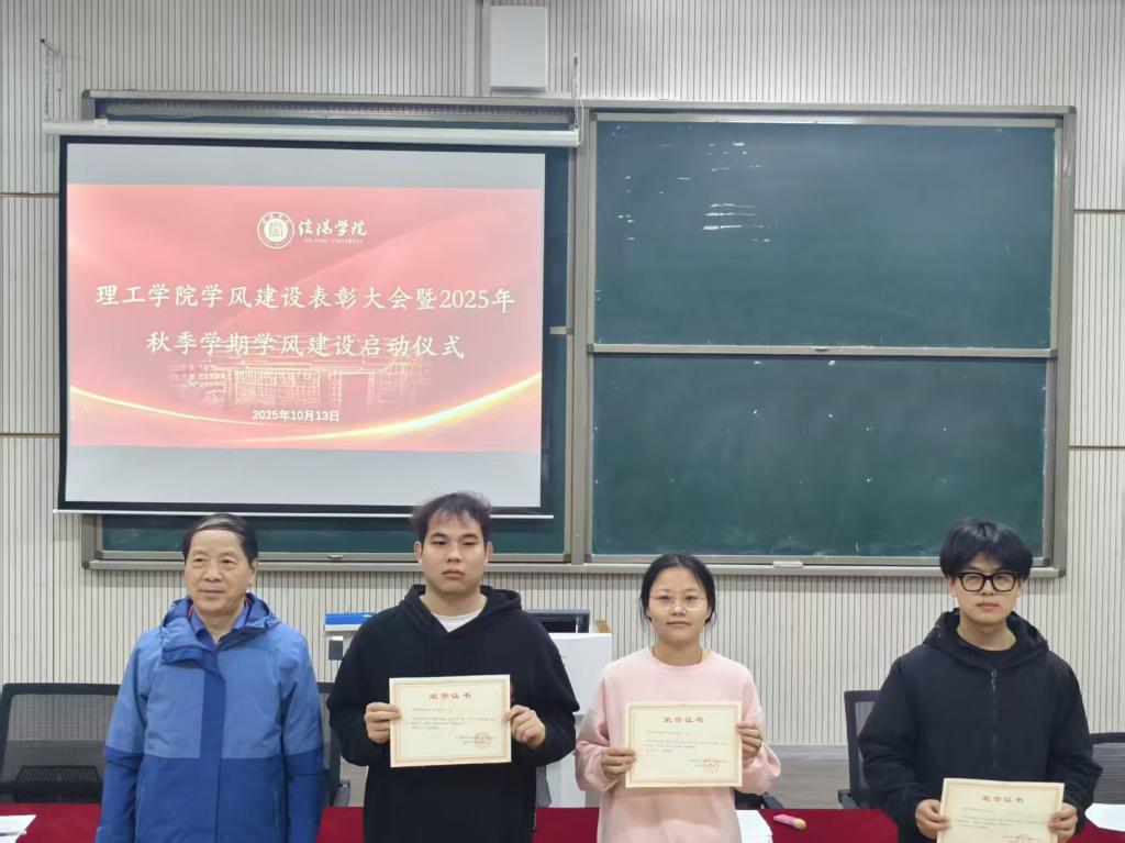 田亚星为2024—2025学年第二学期先进个人颁发荣誉证书;杨晓杰为优秀组织者授予奖项;肖生发为先进班集体颁发荣誉证书,充分肯定其在学风建设中的示范带动作用。