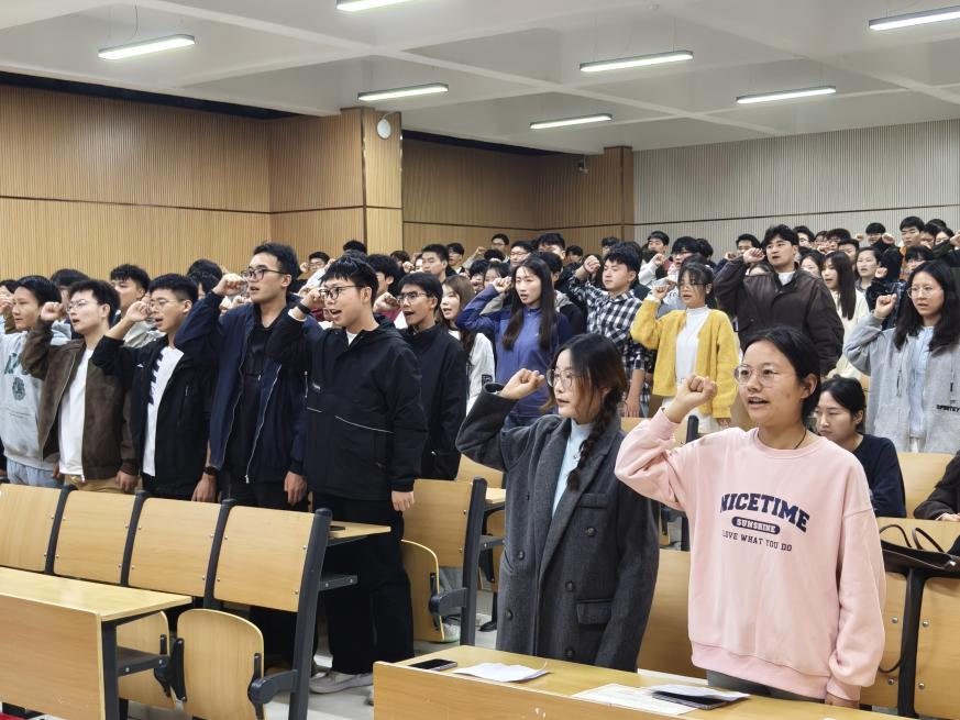 随后,2024级地理科学专业的康能能同学作为领誓人,引领全体与会学生怀着肃穆之心,进行庄严宣誓。