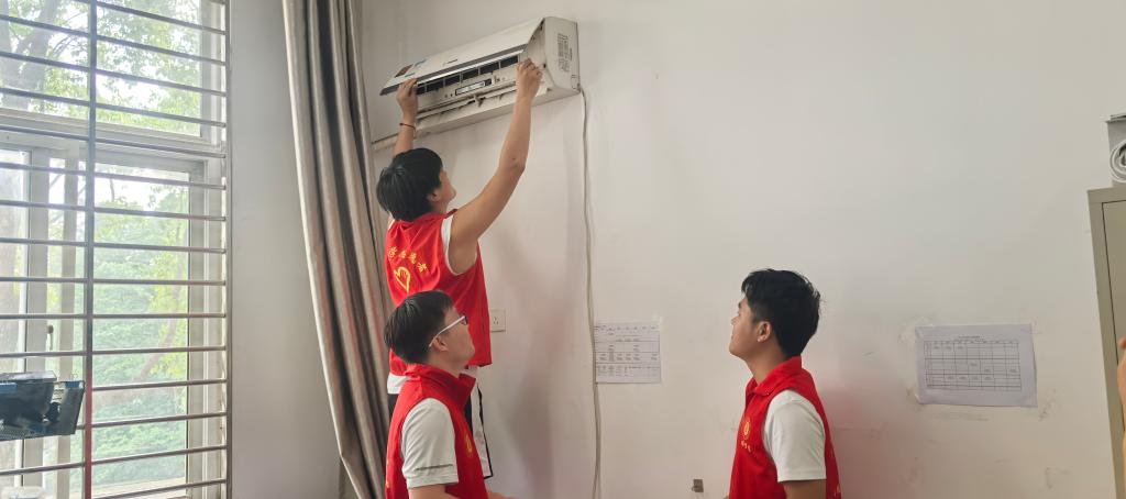 此次志愿活动,先后对理工学院二楼的教师办公室和会议室的空调进行了拆洗和安装,并排查了安全隐患。经过几个小时的辛勤劳动,空调焕然一新,散热片上的灰尘和污垢被彻底清除,为老师们夏季使用空调提供了干净卫生的环境,得到了理工学院领导及老师的赞许。