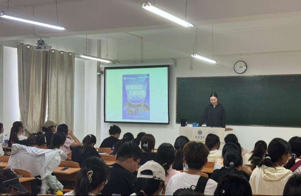 活动首日,学院组织全体学生集中观看《防灾减灾科普教育专题片》。视频通过模拟地震、火灾、电气事故等突发场景,结合高校真实案例,系统讲解灾害预防、应急逃生及自救互救技能。观看结束后,各班级围绕实验室安全、宿舍用电规范等议题展开讨论,学生们通过分享亲身经历,进一步深化对安全隐患的认知。