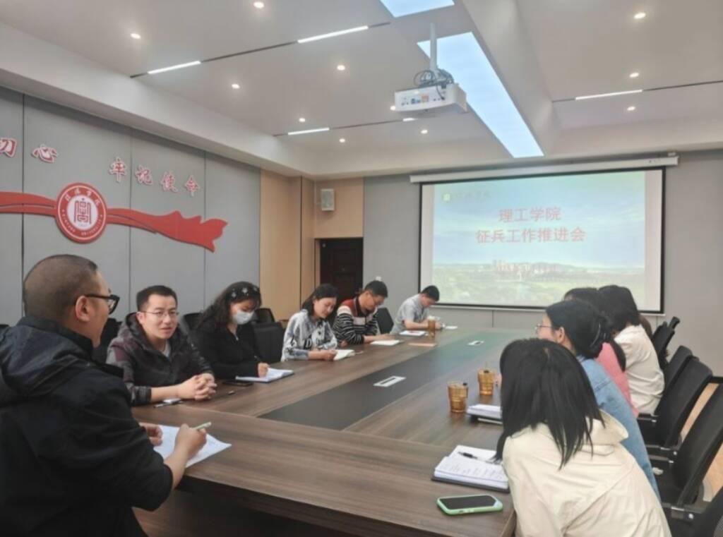 4月14日,理工学院于理工楼201会议室召开2025年征兵工作推进会,学院党总支书记赵佳、学工秘书杨晓杰及全体辅导员参会。