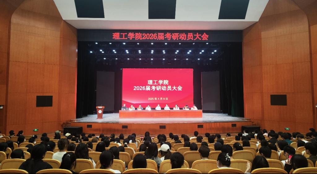 为进一步加强学风建设,帮助同学们树立正确的目标,提高升学的积极性与精准选择。2025年4月9日晚,理工学院于音乐厅召开2026届考研动员大会。院长肖生发、党总支书记赵佳、教学副院长李晓严、考研指导老师、全体辅导员及2026届准备考研学生参会,本次会议由赵佳主持。