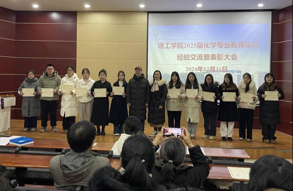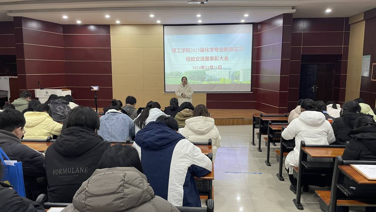 12月31日上午,理工学院化学专业2025届教育实习经验交流暨表彰大会在浉河校区图书馆102举行。理工学院院长肖生发、党总支书记赵佳、教学副院长李晓严、化学教研室主任黄艳伟、化学专业全体教育实习指导教师以及2021级全体同学参加了大会,大会由化学教研室张瑞老师主持。