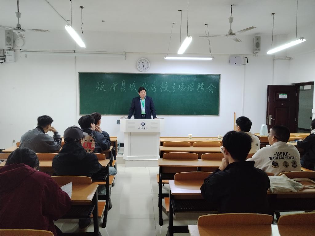 为了进一步促进毕业生高质量就业,搭建毕业生与用人单位双向选择平台,11月16日上午,理工学院邀请延津县城北学校在理工楼301教室举行专场招聘会,毕业班辅导员甘玉锋、李英治及全校近百名毕业生参加了招聘会。