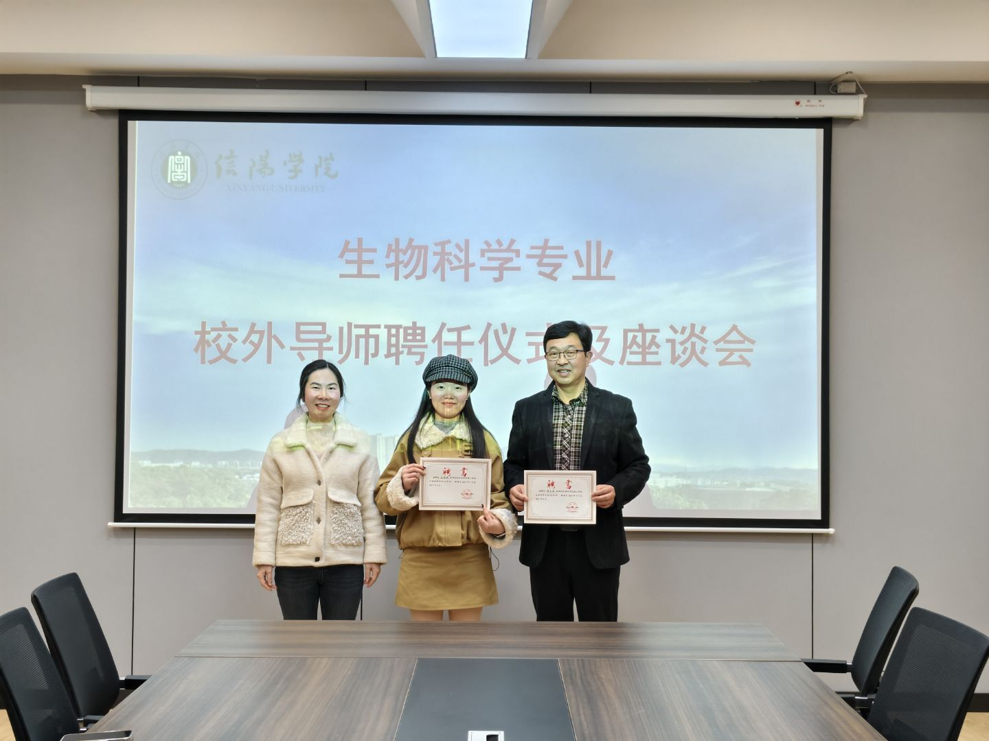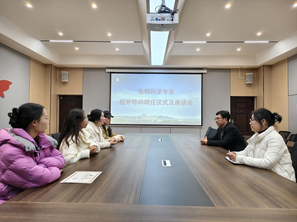 为深化教师教育改革,构建高校与中学协同育人机制,切实提升师范生培养质量,理工学院生物科学专业聘请了信阳市羊山中学胡玉湘老师和信阳市第七中学王诗雨老师作为生物师范生的兼职指导老师。11月20日下午,理工学院在理工楼201会议室举行了聘任仪式,仪式由生物科学教研室高进勇主任主持,副院长李晓严及生物科学教研室部分教师参加。