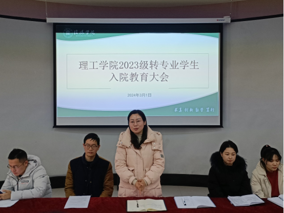 为进一步推动理工学院专业教育建设,加强转专业新生教育。日前,理工学院在理工楼116举行了2023级转专业入院教育大会。学院党总支副书记张红梅、教学副院长李晓严、学工秘书杨晓杰、团总支书记杨翔宇、全体辅导员出席会议。2023级全体转入新生参加会议。本次会议由学工秘书杨晓杰主持。