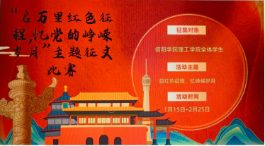 回顾光辉历程,追忆红色岁月,为了继续弘扬光荣传统,赓续红色血脉,永远把党的红色精神继承下去,理工学院党总支部主办、学院大别山精神学习传承社承办了“启万里红色征程,忆党的峥嵘岁月”主题征文活动。