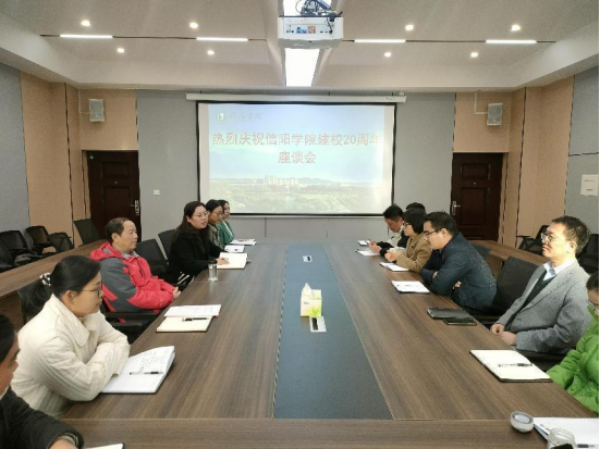 11月16日下午,理工学院在理工楼201会议室举行庆祝信阳学院建校20周年教师座谈会。学院院长肖生发、党总支副书记张红梅、教学副院长李晓严、博士代表及从教10年以上教师代表参会。行政干事樊瑞持了座谈会。