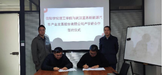 为了促进高校、企业之间的合作,共同推进汽车专业产学研一体化发展。11月27日上午,理工学院与武汉蓝恩新能源汽车产业发展股份有限公司举行产学研合作单位签约仪式。参加签约仪式的有理工学院院长肖生发、汽车工程教研室主任王思满,武汉蓝恩新能源汽车产业发展股份有限公司总经理蔡宏银产品技术部部长杜昕蔚。此次签署的协议旨在加强双方在学生及师资培养和新能源领域的科技创新合作,以推动新能源汽车产业的持续发展。