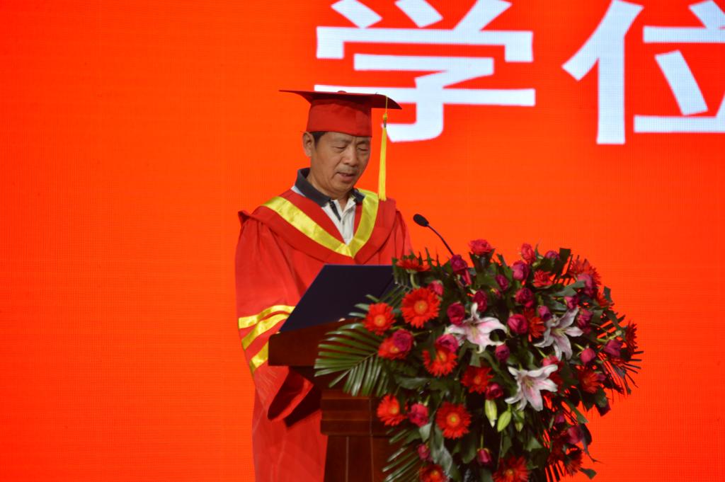 理工学院院长肖生发教授为毕业典礼作《人生因实干而精彩》的致辞。首先,他代表学院全体教师向圆满完成学业的同学致以最热烈的祝贺,祝贺他们顺利完成学业,开启人生新的篇章。同时向毕业生们提出三点建议:一是保持求知若渴的初心,树立终身学习的理念;二是坚持知行合一,做有本领的时代青年;三是努力追求卓越,做勇敢坚毅的奋斗者。希望同学们不负党和国家的培养,承担起时代赋予的责任和使命。敢于担当,甘于奉献,在今后的人生道路上努力绽放绚烂青春,奋笔书写人生华章。