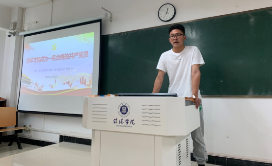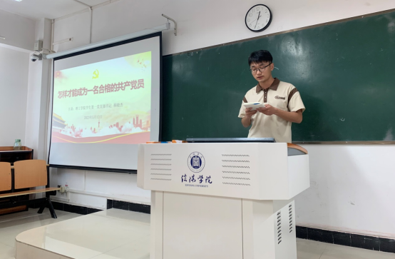 本期积极分子21级化学本科1班时君文、程晓栋就“如何早日成为一名合格的共产党员”做交流发言,两位同学纷纷表示接下来要对照党章党规找差距,并在接下来的学习生活各方面中努力发挥先锋模范带头作用,争取早日成为一名有理想、有道德、有文化、有纪律的合格党员。