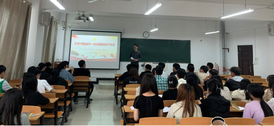 学生第一党支部书记杨晓杰老师以“怎样才能成为一名合格的共产党员”为题做报告,并就如何才能做一名合格的共产党员向全体学员分享了以下五点建议:第一,要牢记入党誓词,不断端正入党动机;第二,要坚定理想信念;第三,要正确理解党的性质和党的总纲;第四,要正确理解党的宗旨和党的组织;第五,要正确理解党员义务和权利;第六,要自觉参加党组织生活。