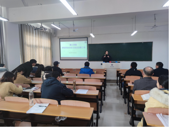 为进一步贯彻落实全国高校思想政治工作会议精神以及学校思想政治工作实施方案,落实立德树人根本任务,充分发挥课堂教学育人主渠道作用,积极推进课程思政建设。12月23号下午,我院在理工楼604、605教室组织开展了第三场课程思政经验交流会,院长肖生发、党委副书记张红梅、教学副院长李晓严以及全体教师参加本次会议,会议由副院长李晓严、教学秘书赵丹主持。学校课程思政建设工作小组组长刘志新等四人莅临指导,另外也邀请了学校教学督导专家吴锐教授参加此次交流会。