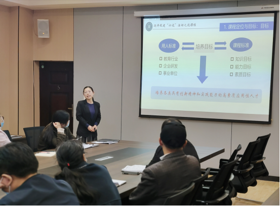 会上,首先由辅导员甘玉峰老师“用大别山精神铸魂育人”为主题进行了辅导员说育人。接着,徐先懂老师、吕海成老师、毛丽慧老师、王仲初教授、张文君老师、臧明丽老师、刘仁植老师、贾小平老师、朱凯老师、李欢老师依次进行了讲说。各个老师围绕课程定位与教学目标、课程设定及课程特色、教学团队、课程组织与实施、课程考核及教学总结与反思等方面对任教课程进行了讲解。