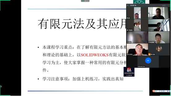 会议开始,王老师首先就活动目的及要求进行了说明,线上授课对每位青年教师是一种挑战,为了上好每一堂课,必须需要足够准备工作。紧接着朱凯老师通过平台讲授了《有限元法及应用》、陈修魁老师讲授了《汽车排放与噪声控制》,张涛老师讲授了《机械故障诊断》。然后汽车工程教研室全体老师分别对以上三位老师的授课内容、方法、技巧等方面做了点评。其中任教授结合个人教学经验谈了首次上课时,为什么要上这门课,怎么上这么课,如何激发学生兴趣三个方面对三位老师进行了点评。接着,任倩老师针对去年疫情期间线上教学工作中遇到的问题、线上教学中所做的尝试、以及线上教学需要准备的工作等方面进行了详细的讲解。最后,肖院长进行了总结发言,肖院长指出三位青年教师基本达到了线上教学的要求,但是还是需要吸收各位老师所提出来的意见和经验,需要加强内容熟练程度,提高学生的线上教学兴趣。