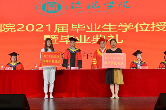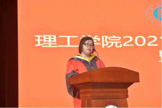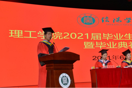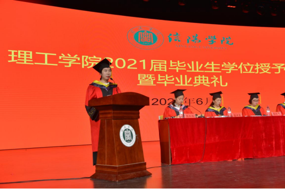 典礼在庄严的国歌声中拉开了帷幕。毕业典礼上,李晓严宣读了《理工学院关于表彰考研明星班级、宿舍和个人的决定》和《理工学院关于评选2021年省级优秀毕业生、校级优秀毕业生的评选报告》,赵丹宣读了《理工学院关于授予2021届本科毕业生学士学位的决定》。褚金海和肖生发给2021届本科毕业考研先进班级和宿舍进行了颁奖。郭玉洁同学宣读了《理工学院毕业寄语》。
