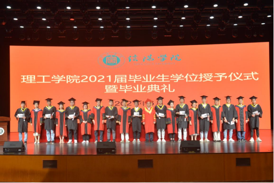 在欢快激昂的旋律中,与会领导和专家教授们为2021届毕业生一一拨流苏,赠与理事长寄语和理工学院寄语,并合影留念。