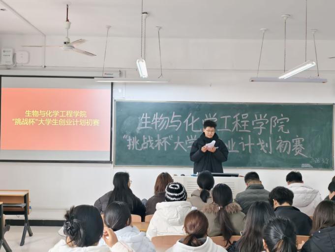 为进一步激发学生创新精神、提升创业实践能力,营造浓厚的校园科创氛围,3月9日,生物与化学工程学院举办2026年“挑战杯”大学生创业计划竞赛学院初赛。学院党总支书记赵佳、教学副院长李晓严、各教研室主任、全体辅导员以及竞赛指导老师出席此次竞赛并担任评委,各参赛项目团队学生负责人参与路演。