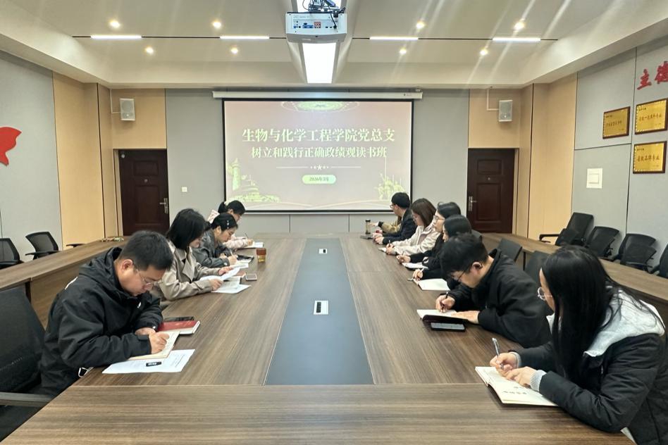 3月23日上午,生物与化学工程学院党总支在201会议室举行树立和践行正确政绩观学习教育专题读书班。党总支中心组成员、各党支部书记、全体辅导员参加会议,会议由党总支书记赵佳主持。