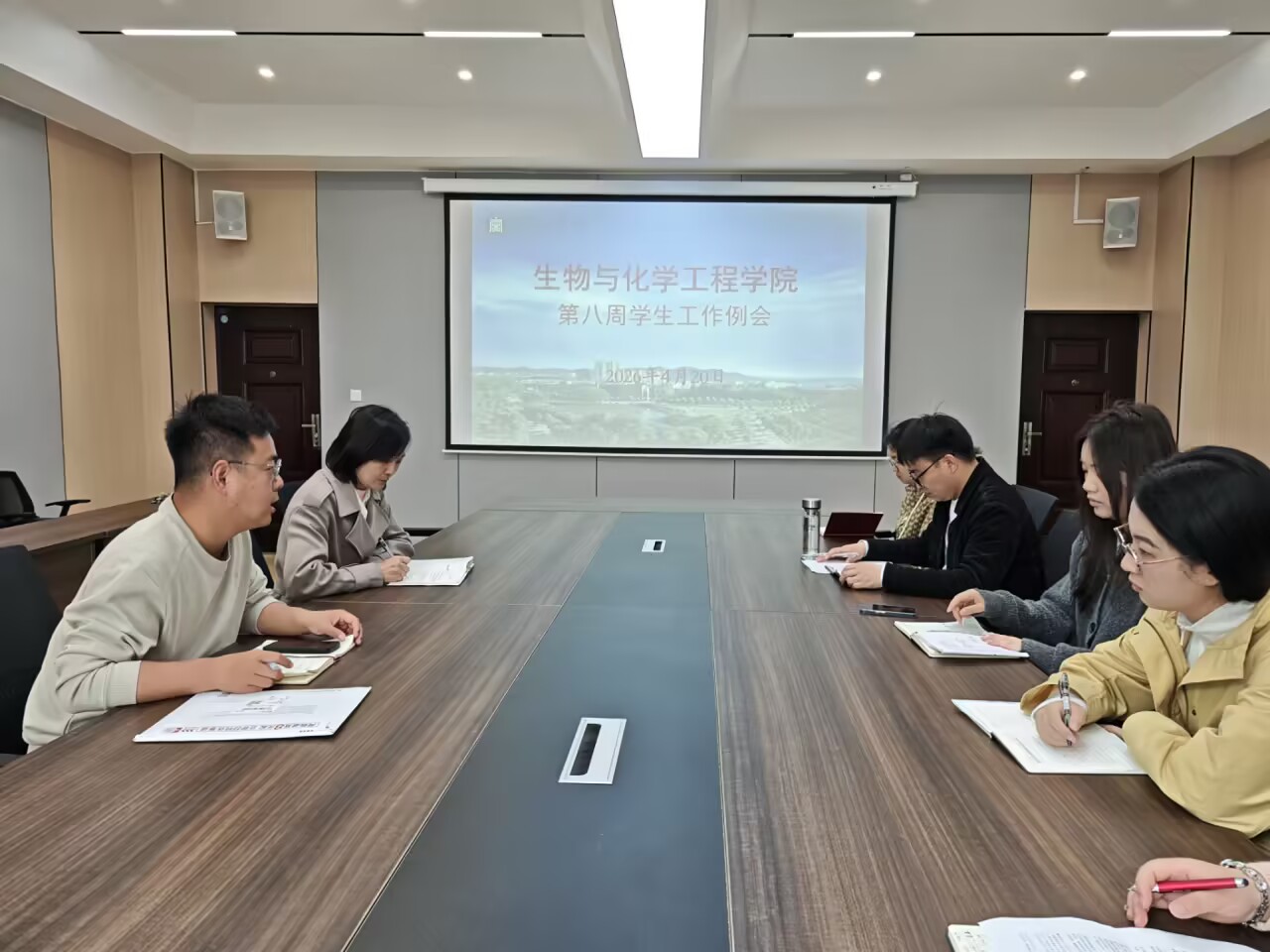 为统筹推进学生管理与毕业生就业等重点工作,4月20日,生物与化学工程学院召开2026年春季学期第八周学生工作会议。学院党总支书记赵佳、副书记邓先强及全体辅导员参加会议。