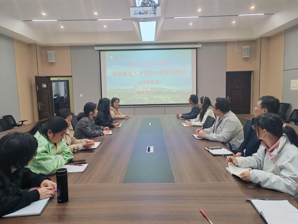 为深入贯彻新时代高等教育改革要求,主动对接国家战略与产业发展需求,4月21日,生物与化学工程学院化学专业2026版本科人才培养方案修订研讨会在理工楼201会议室顺利召开。化学教研室全体教师参会,会议由黄艳伟主持。