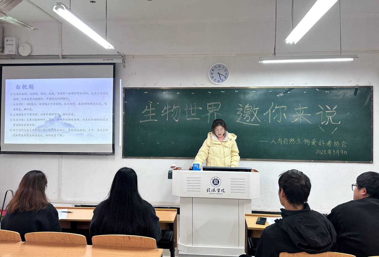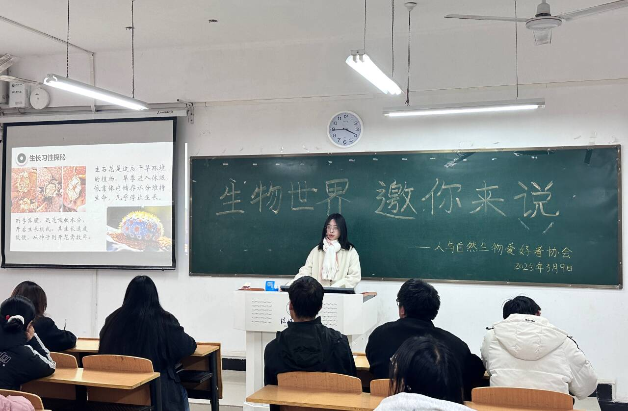 为了鼓励参与者深入探索生物世界,培养对生物学的热爱,拓宽知识视野。3月9日下午,在人与自然生物爱好者协会副会长的带领下,第三届“生物世界,邀你来说”在理工楼401圆满举行。