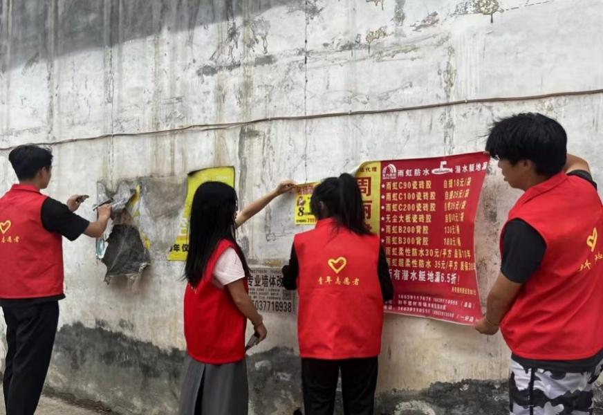 7月20日至7月25日,团队成员张肖磊随漯河市当地志愿者前往召陵区进行公益志愿服务打扫社区内卫生,认真清理路面和草丛里的垃圾、落叶和杂物。清理墙面上的小广告,在打扫过程中,他们不放过任何角落,保证墙面和电线杆上整洁。打扫乡村基础设施,切实做到人居环境整治,改善了社区的公共面貌,创建美好家园。