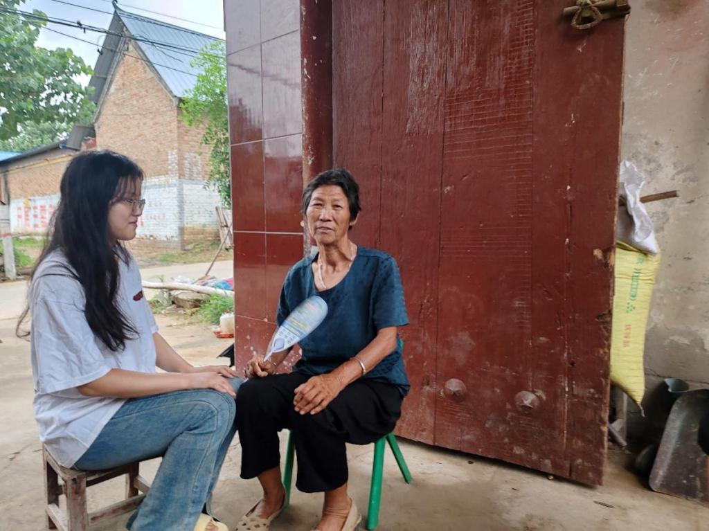 关爱零距离,情暖老人心。7月20日至7月27日,小组成员乔倩雨进行采用走访的方式咨询基层老人的生活情况,服务内容包括陪伴老人,为老人提供健康咨询等等。通过与空巢老人建立联系,了解到他们的日常生活以及内在想法。另外,还通过实地观察,以及与该村社区的交流,调查空巢老人生活中遇到的困难等等。