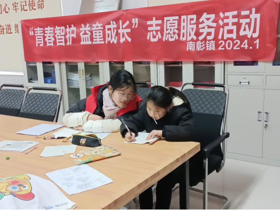 以自己学习的知识,助力家乡的发展。从2024年1月15日正式开始工作。吕青青同学就参与了“青春智护 益童成长”志愿服务活动,由志愿者们协助小朋友作寒假作业,帮助小朋友们解决难题,也会一起画画,同时需要休息时也会带领一起做游戏,劳逸结合,助力小朋友更健康的成长。