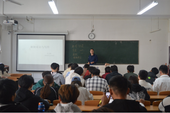 为提高理工学院学生干部的新闻稿写作能力,更好地做好新闻宣传工作,11月6日中午,理工学院在理工楼302教室开展第六期学生干部培训班第二次课程,辅导员甘玉锋作《新闻采访与写作》专题讲座。理工学院第十七届团总支、学生会干部及2023级各班主要班干部参加培训。