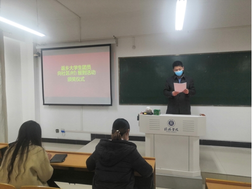 3月22日下午,理工学院在理工楼502教室召开了2022年寒假返乡大学生团员向社区(村)报到活动社会实践优秀个人表彰大会,理工学院团总支书记徐国文,学工秘书杨晓杰,辅导员甘玉锋、颜欢、张翠贞出席了会议。寒假社会实践获奖学生参加了表彰大会。