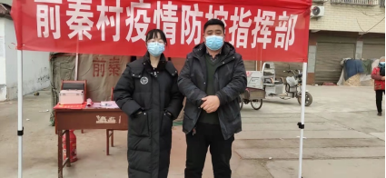 2022年1月12日起,许梦雅同学在前秦村委疫情防疫卡点自愿成为一名志愿者值班。她在卡点的工作内容有:1、给来往的村民进行测体温并进行登记、酒精消毒以及给未戴口罩的村民发新的口罩并叮嘱他们做好自身防护,尽量待在家中,不要外出;2、帮助大队支部书记整理返乡人员的资料并判断其是否从风险地区返乡,从而判断其是否需要进行居家隔离。