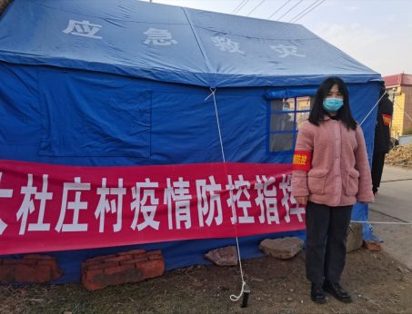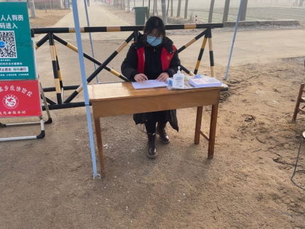 李佳佳同学在家乡加入了防疫志愿者工作,主要是在村庄入口对进出村庄的车辆、人员进行体温测定并登记,对外来车辆合理地进行劝退,积极辅助村干部工作。同时向村民宣传疫情防控的有关知识,