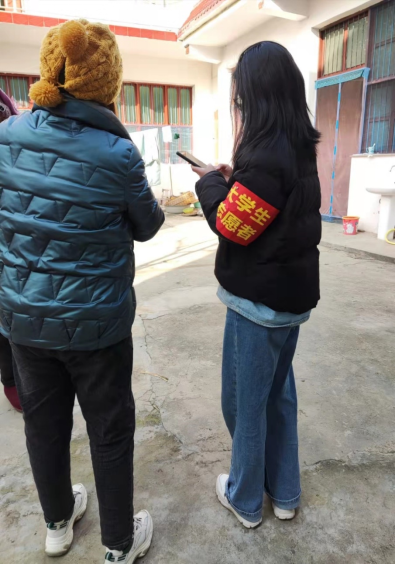 匡海霞同学在挨家挨户的走访过程中,询问家中是否有外出人员未曾回归,并对其家属告知其回家应该做的准备材料及注意事项。她们积极将政府印发疫情告知单派发至各户,希望各户都能树立起对目前严峻形势的重视意识。