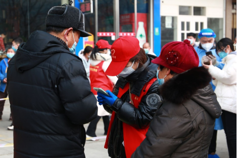 从1月9号开始,薛淼淼同学就被分配到商丘市区核酸检测点做志愿者,在这一段时间的志愿服务中,她积极配合街道办事处书记的指导,先是负责各级各人员进行扫码申报的工作,与医务工作者并肩作战,从白天到黑夜。而后负责身着红马甲维护秩序,耐心指导不知如何完成核酸检测步骤的市民,用手机扫码填写资料获取核酸检测的二维码。