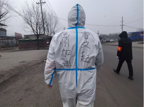 1月2号晚,禹州市进行第一次核酸检测,他负责维持检测人员的秩序持续到凌晨四点检测结束。