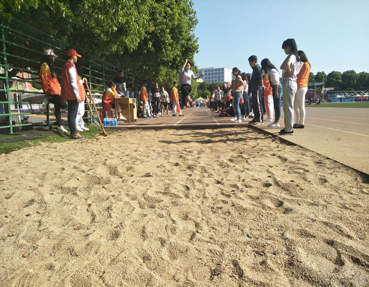 随着参赛队员检录完毕,运动员们井然有序的依次参赛,神情从容坚定,带着青春的朝气与自信。助跑、踏条、腾空、落地,一条美丽的弧线,一个轻捷的身影,从眼前掠过,踏入沙坑,完美着地。赛场周围雷鸣般的掌声与呼喊声此起彼伏,以此种形式来表达对运动员精彩表现的称赞。参赛运动员相互之间更是彼此鼓励,当一方表现突出时,相互之间竖起大拇指表现出对其的尊敬,充分展现出运动所特有的友谊第一,比赛第二的原则。