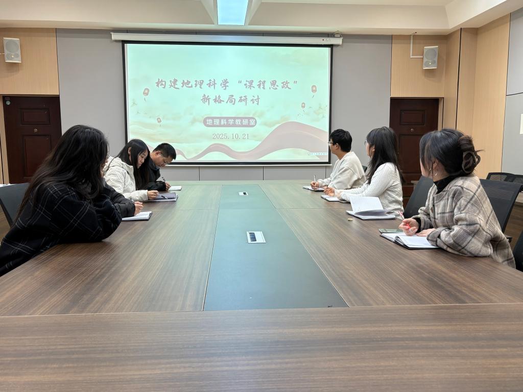 为深入贯彻落实立德树人根本任务,全面推进地理科学专业“课程思政”建设,提升专业课教师的课程思政教学能力,地理科学教研室于2025年10月21日,在理工楼201会议室,开展了构建地理科学专业“课程思政”新格局教研活动。会议由地理科学教研室主任魏新玲老师主持,地理科学教研室全体教师参会,并进行了深入交流与探讨。