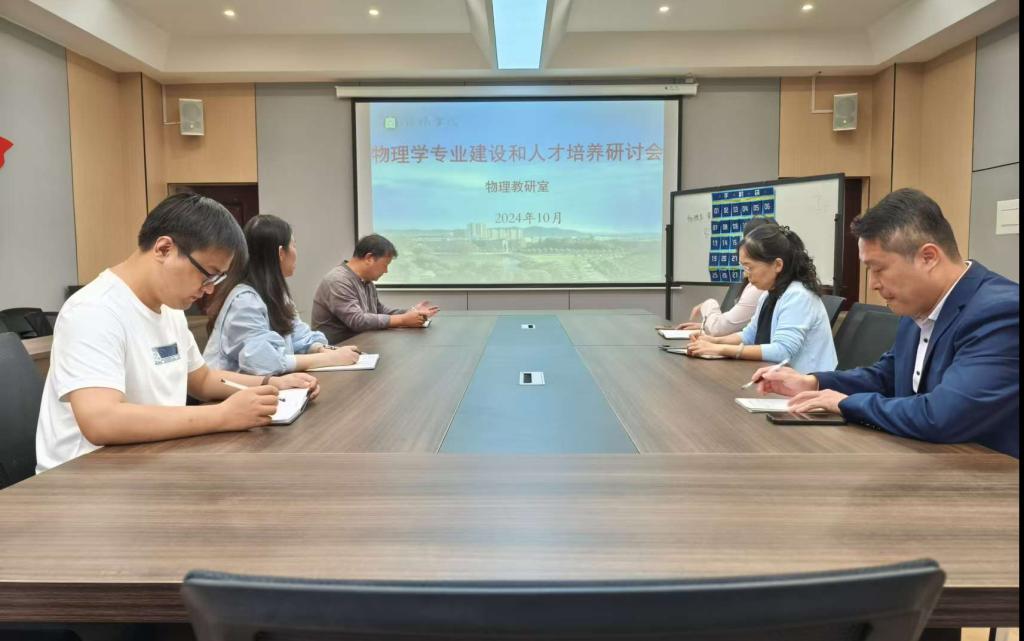 为保证我校物理学专业能更加健康快速的发展,2024年10月15日,理工学院物理教研室在理工楼201会议室成功召开了专业建设和人才培养研讨会,物理教研室全体老师参会。会议由高延利老师主讲,贾小平老师主持。