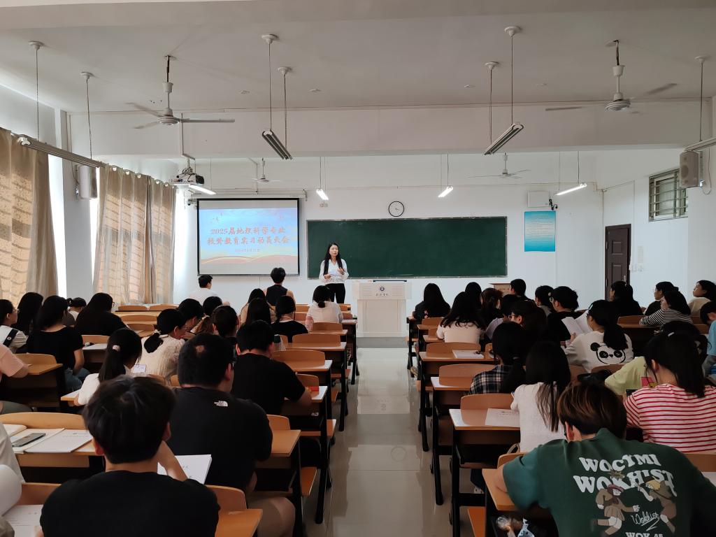 为引导学生做好校外教育实习的各项准备工作,9月26日下午,地理科学专业在理工楼506教室召开2025届地理科学专业本科毕业生校外教育实习动员大会,地理科学专业实习指导教师及2021级80余名学生参加动员大会。会议由付霞老师主持。