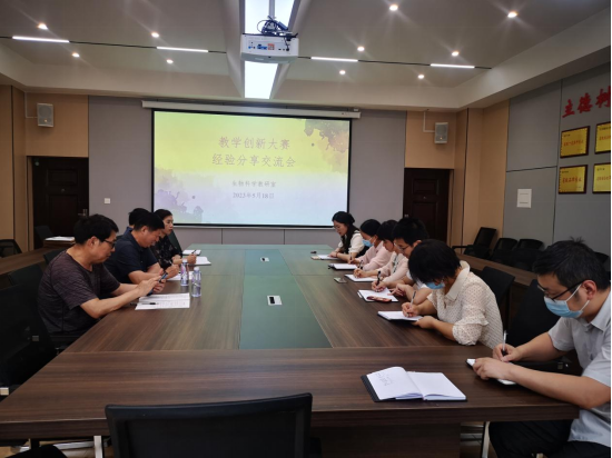 5月19日下午,理工学院生物科学教研室举行“教学创新大赛经验分享交流会”,会议在理工楼201会议室召开。学校教学专职督导吴锐教授、理工学院任柏林教授、生物科学教研室主任高进勇以及生物科学专业的青年教师参会。会议由高进勇主任主持。