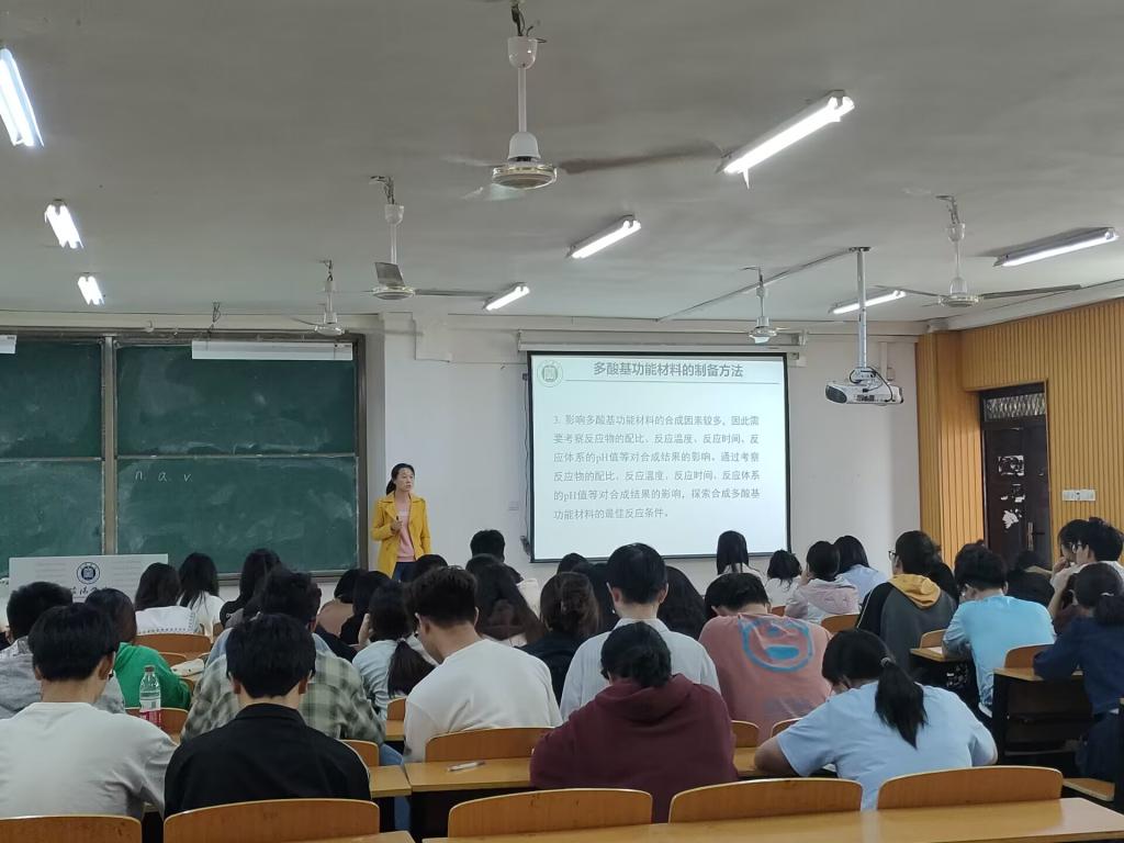 肖利娜博士首先介绍了多酸功能材料的研究和发现,其次围绕多基酸功能材料的制备方法,结构特征,相关表征,应用领域等四个方面结合相关专业知识详细展开讲解。肖博士不仅向同学们介绍了多基酸的研究发现过程,同时也向同学们表达了科研之路的艰辛和科研过程中所面临的挑战。丰富了化学专业的同学对于科研的认识,也让同学们明白了所有的科研成果都不是一蹴而就的,而是科研工作者一步一步探索摸索出来的。
