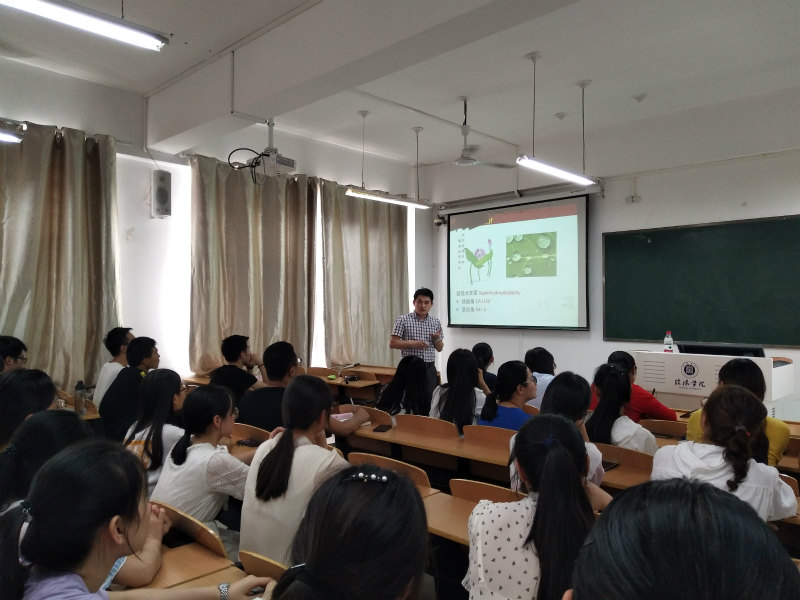 9月24日下午,武汉纺织大学化学化工学院刘丽君博士、万骏博士、张然博士应邀来我校讲学,其中刘丽君博士在我校理工楼507教室作了题为《人工荷叶与负载型纳米催化材料》的学术报告。理工学院化学教研室主任李晓严老师主持了报告会,化学教研室全体教师和化学专业2016级、2017级100余名学生聆听了报告。