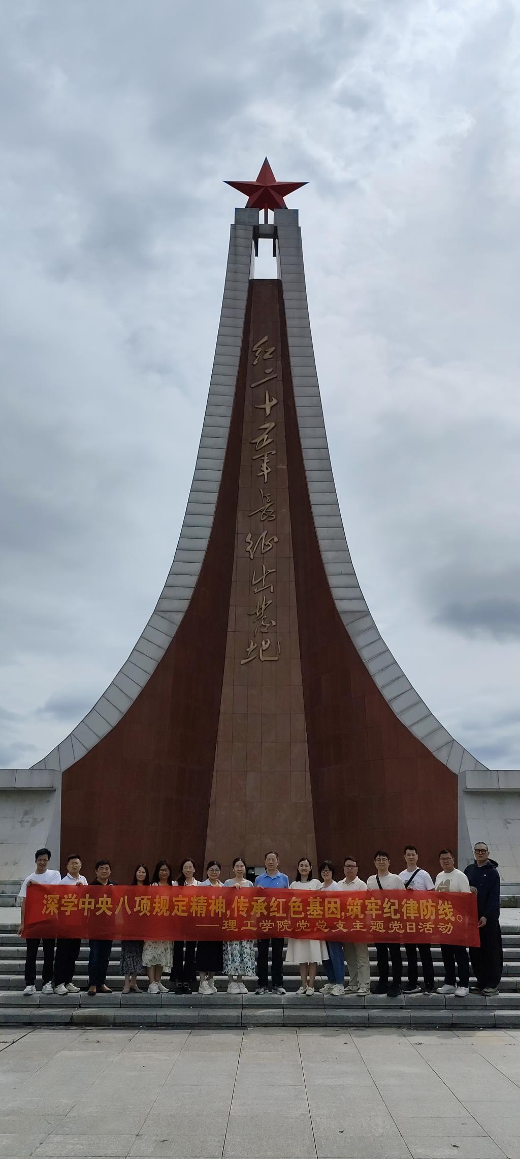 在党的生日来临之际,为缅怀革命先辈,传承红色基因,深入贯彻中央八项规定精神学习教育,理工学院党总支组织教工党员于6月29日上午赴红二十五军长征出发地——信阳市罗山县何家冲,开展了党日活动。