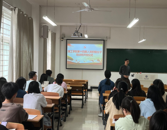 开班仪式上,张翠贞宣读了理工学院第十四期入党积极分子培训工作的相关通知,详细介绍了培训期间日程安排。杨晓杰从培训班的意义、目的等方面进行讲解,对培训期间纪律做了强调,对培训学员提出希望和要求,他希望大家从思想上要提高认识,严格遵守培训纪律,认真参加培训班的各项学习和实践活动,争取早日从思想上和行动上加入党组织。