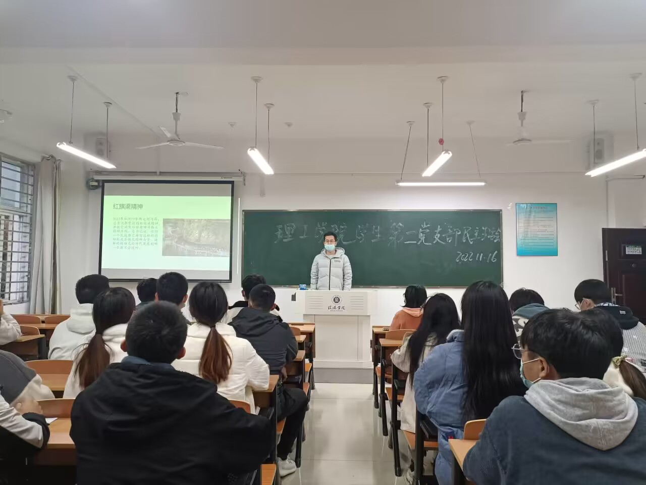 11月16日下午,理工学院学生第二党支部在理工楼501会议室开展学习党的二十大精神暨红旗渠精神民主生活会,理工学院学生第二党支部书记甘玉锋、支部副书记胡文亚及全体支部成员参加了生活会。
