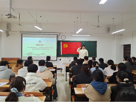 第二环节是杨晓杰围绕“学习贯彻党的二十大精神之如何发挥的党员先锋模范作用”主题与大家进行交流讨论。他希望全体毕业生党员,要以优秀共产党员为标杆,自觉用习近平新时代中国特色社会主义思想武装头脑,不忘初心,牢记使命。最后,他希望同学们都能自觉行动起来,在接下来的学习工作、生活以及后续毕业生离校的方方面面,以身作则,发挥党员先锋模范带头作用,推进班级和学院各项工作的进行,展现理工学院党员同志的良好精神风貌。